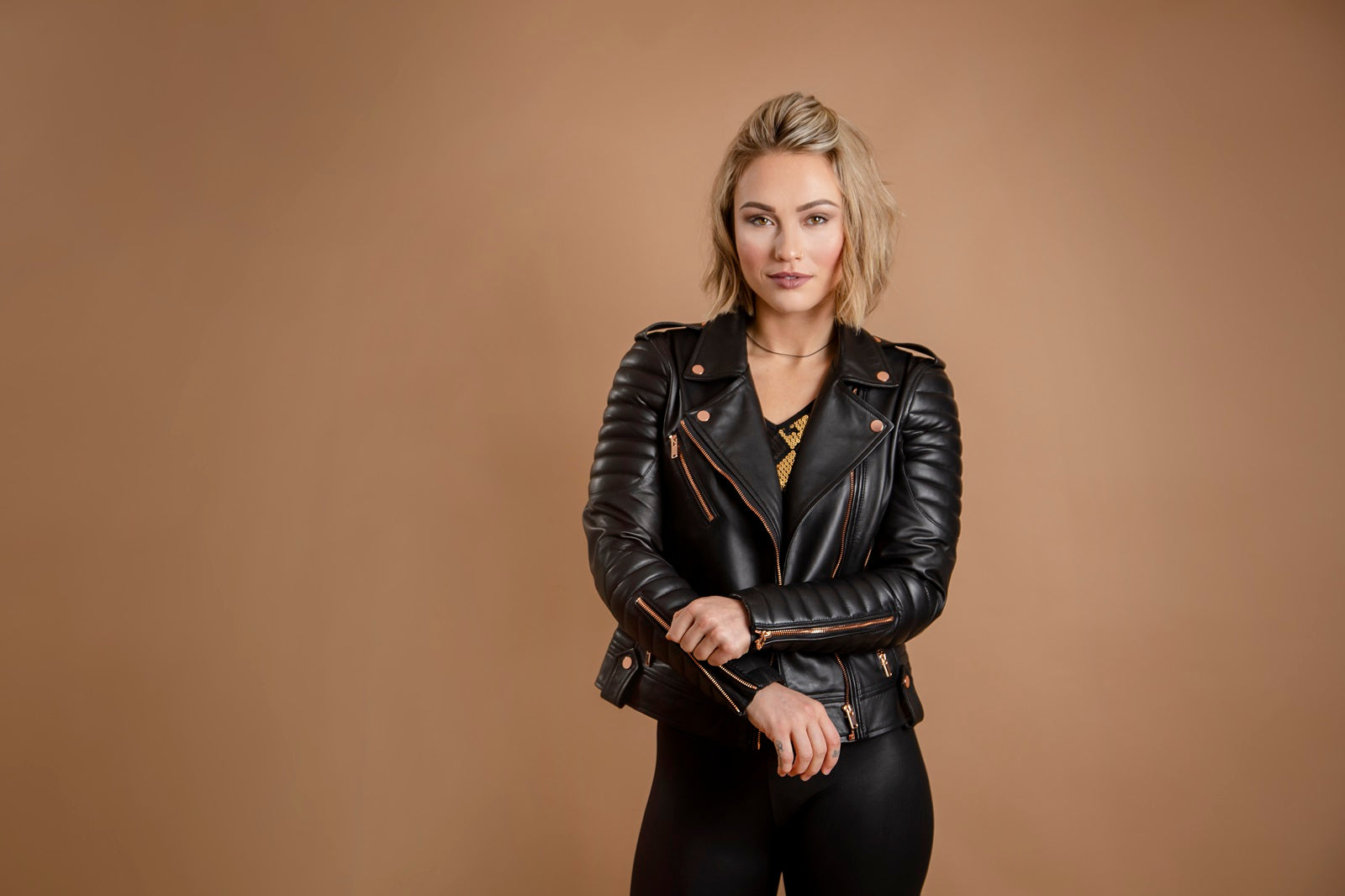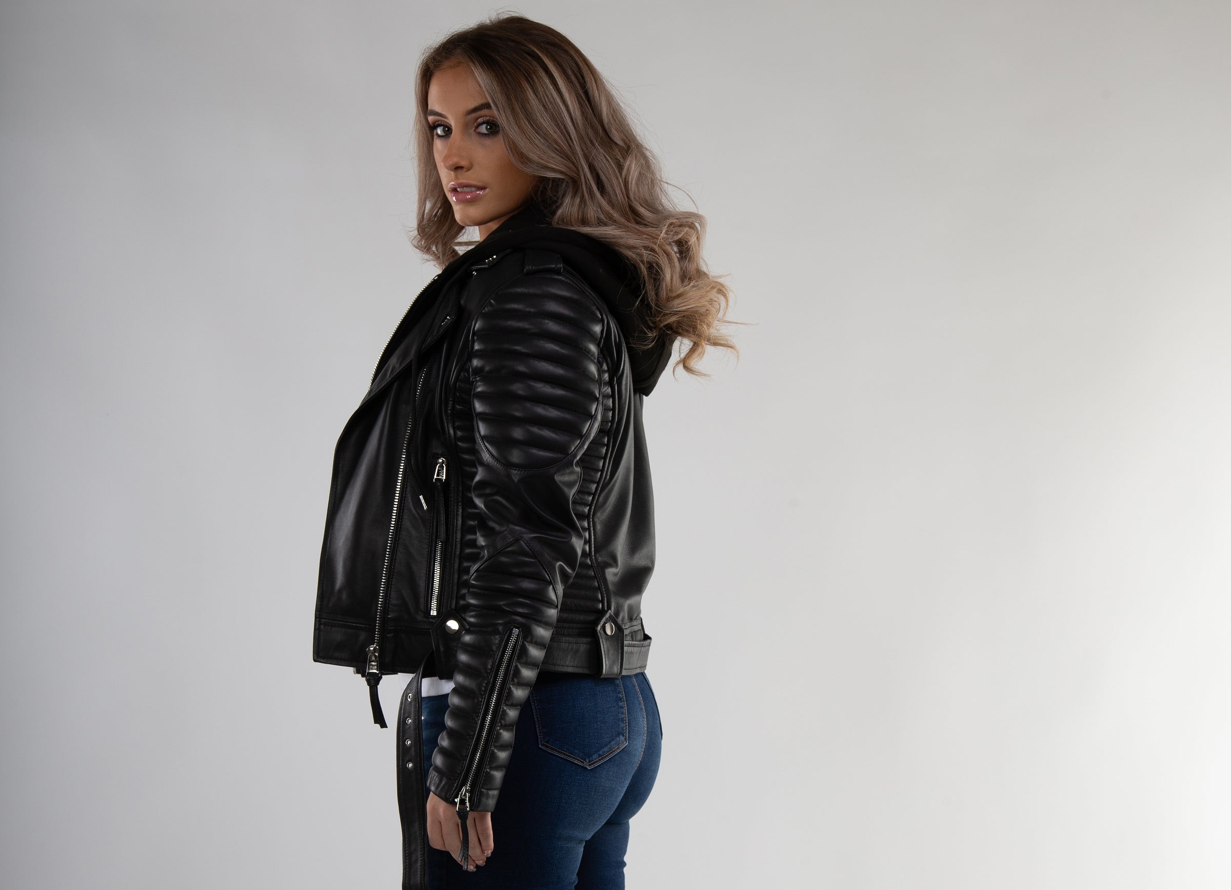 Moto Style Leather Jacket with Rose Gold Hardware | Removable Hood & Fur | Real Raccoon Fur | All Functional pockets