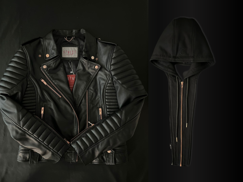 LEATHER JACKET THAT EMBRACES YOU WITH ITS ROBUST, LUXURIOUS TEXTURE. THE SNUG FIT THAT HUGS & COZY HOOD THAT KEEPS YOU WARM TO BREAK THE WIND - THAT'S ALL A WOMAN WANT.